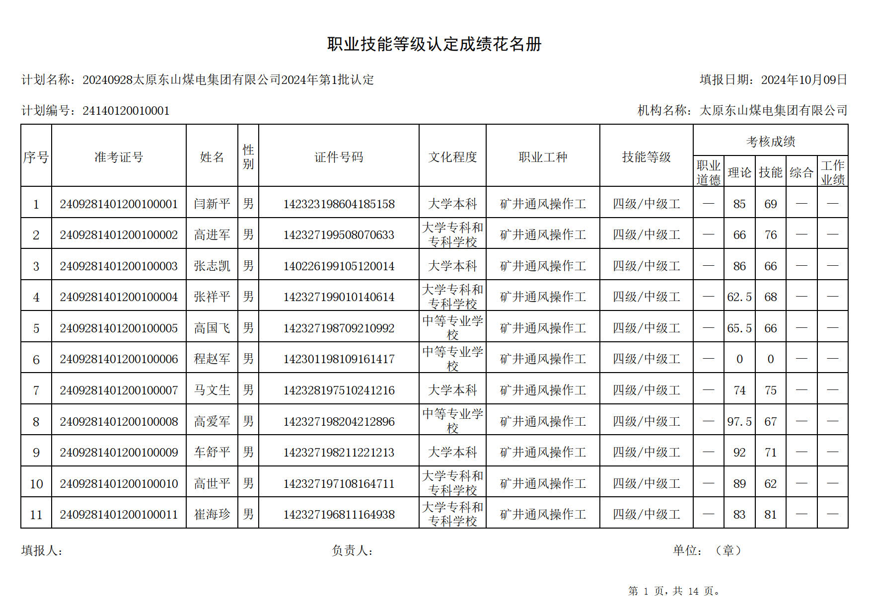 2024年職業技能等級認定成績公示...